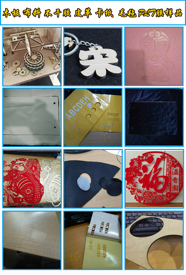 2、于小面積的工藝品加工:雙色板、木板、竹片、有機玻璃板、布匹上刻制各樣的圖形和文字。